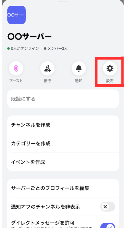 「サーバー設定」をタップ