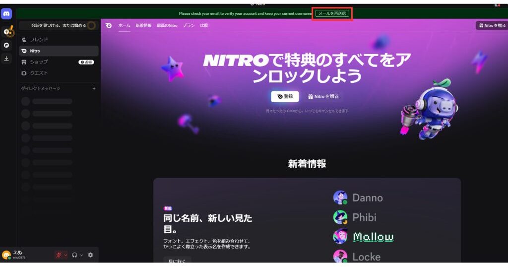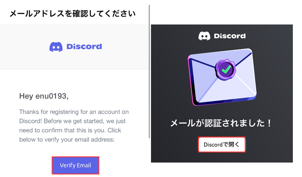 その後、右のような画面に飛ぶため「Discordで開く」をタップします。