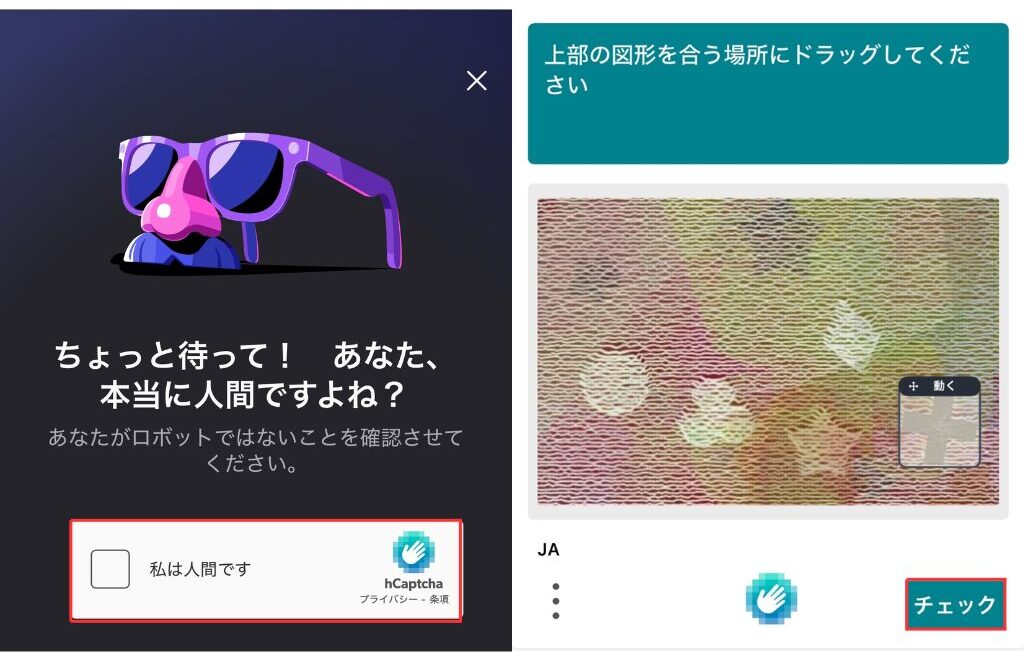 「私は人間です」にチェックを押して簡単なクイズ(?)に答えて「チェック」をタップ