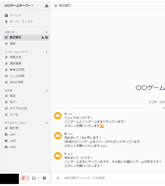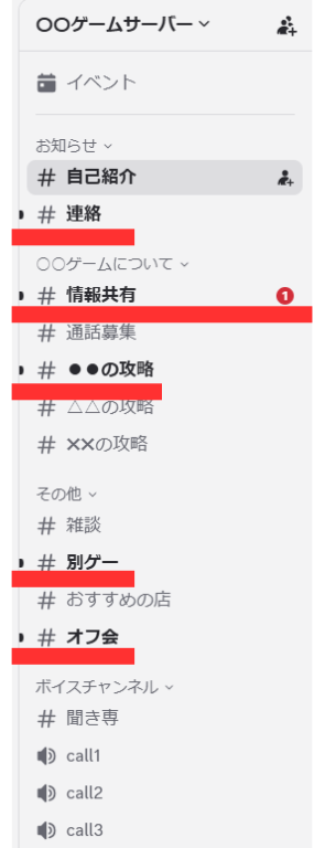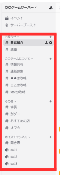 特定のゲームの交流サーバーでも、テキストを分けることでそのゲームの話だけでなく、雑談や別ゲーの話なんかで盛り上がれたりします。