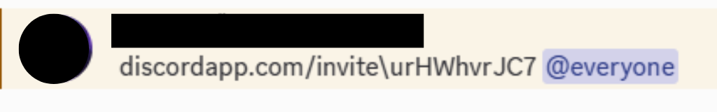 すでにリンクを踏んで乗っ取られたアカウントが、もともとの所有者が入っていたサーバーに無造作にリンクを貼り付けるようになってしまいます。