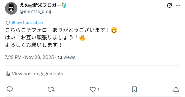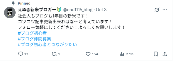 私は1か月前(2025/10)からブログ投稿に挑戦していて、それと同時期にXも始めました。
