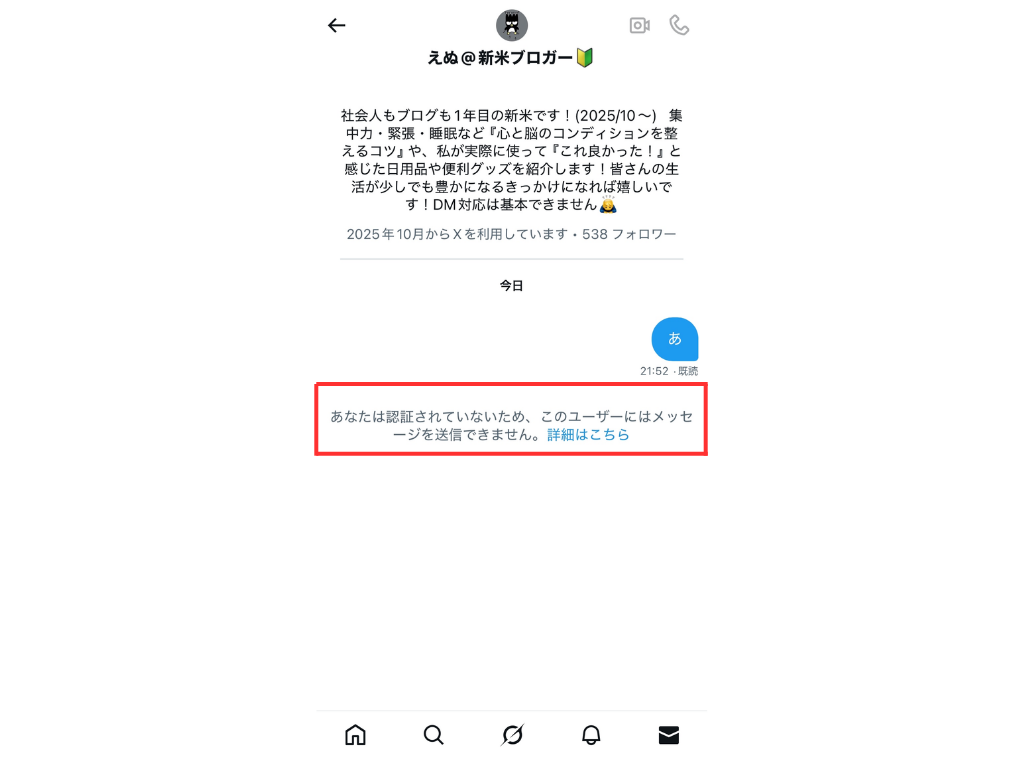「あなたは認証されていないため、このユーザーにはメッセージを送信できません」