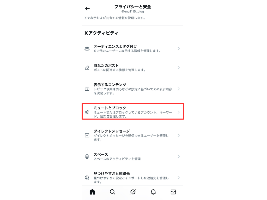 そんな方には以下の操作でミュートやブロックにした人の一覧を見ることが出来ます。