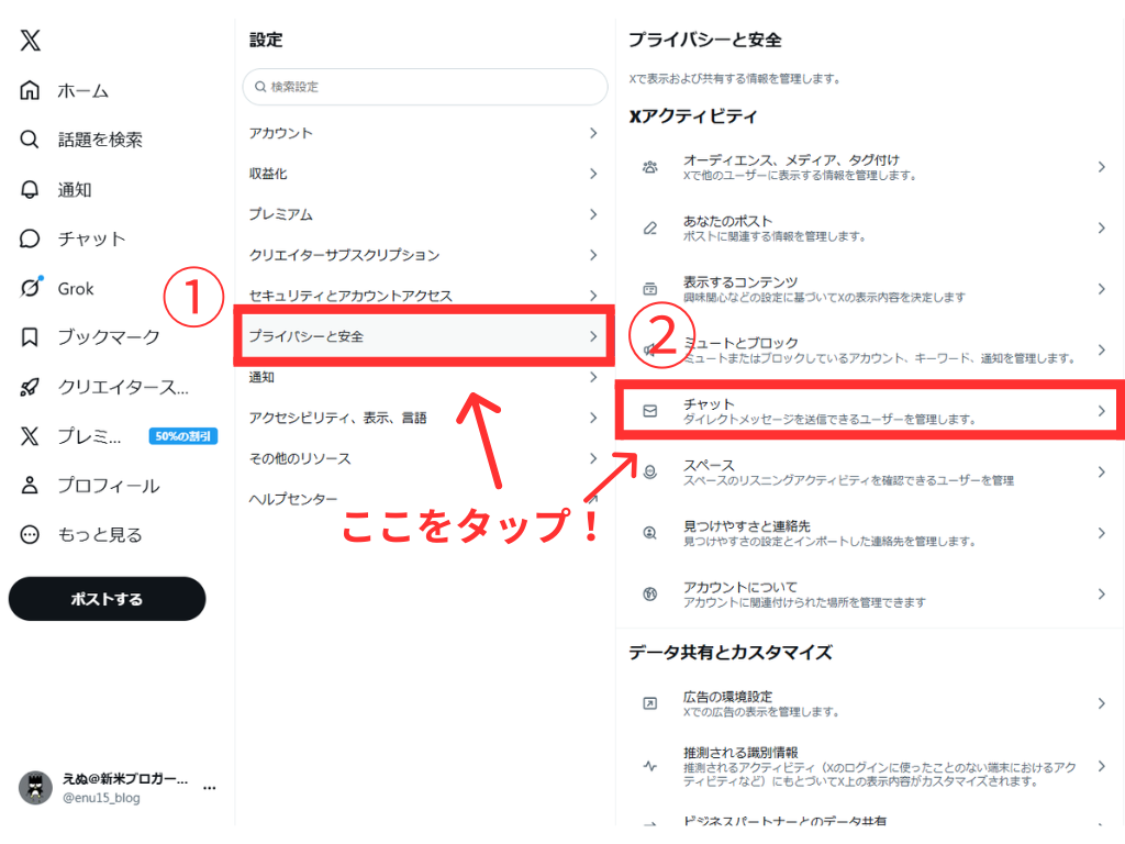 そこで今回はブロックをせずにXのチャット(DM)を受け取らない設定にする方法について解説します!