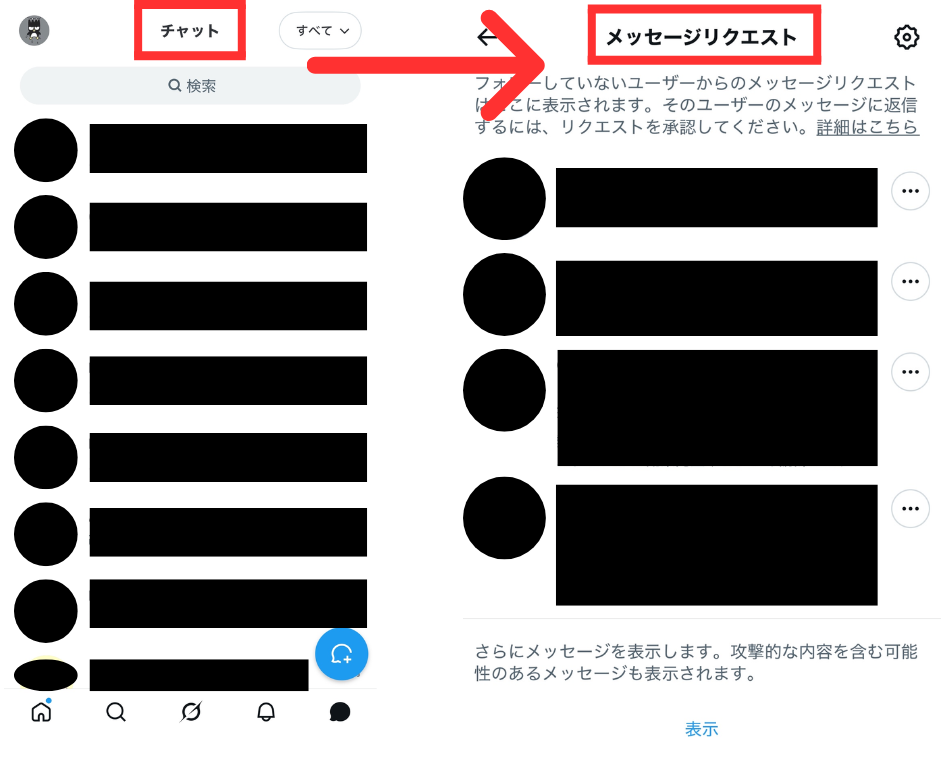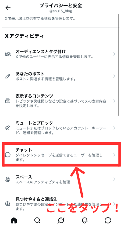 まずはスマホ版Xでチャットを受け取らない設定にする方法を解説します。
