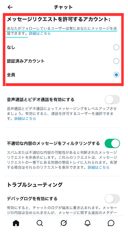 「Xのチャット(DM)が出来る人を制限したい」